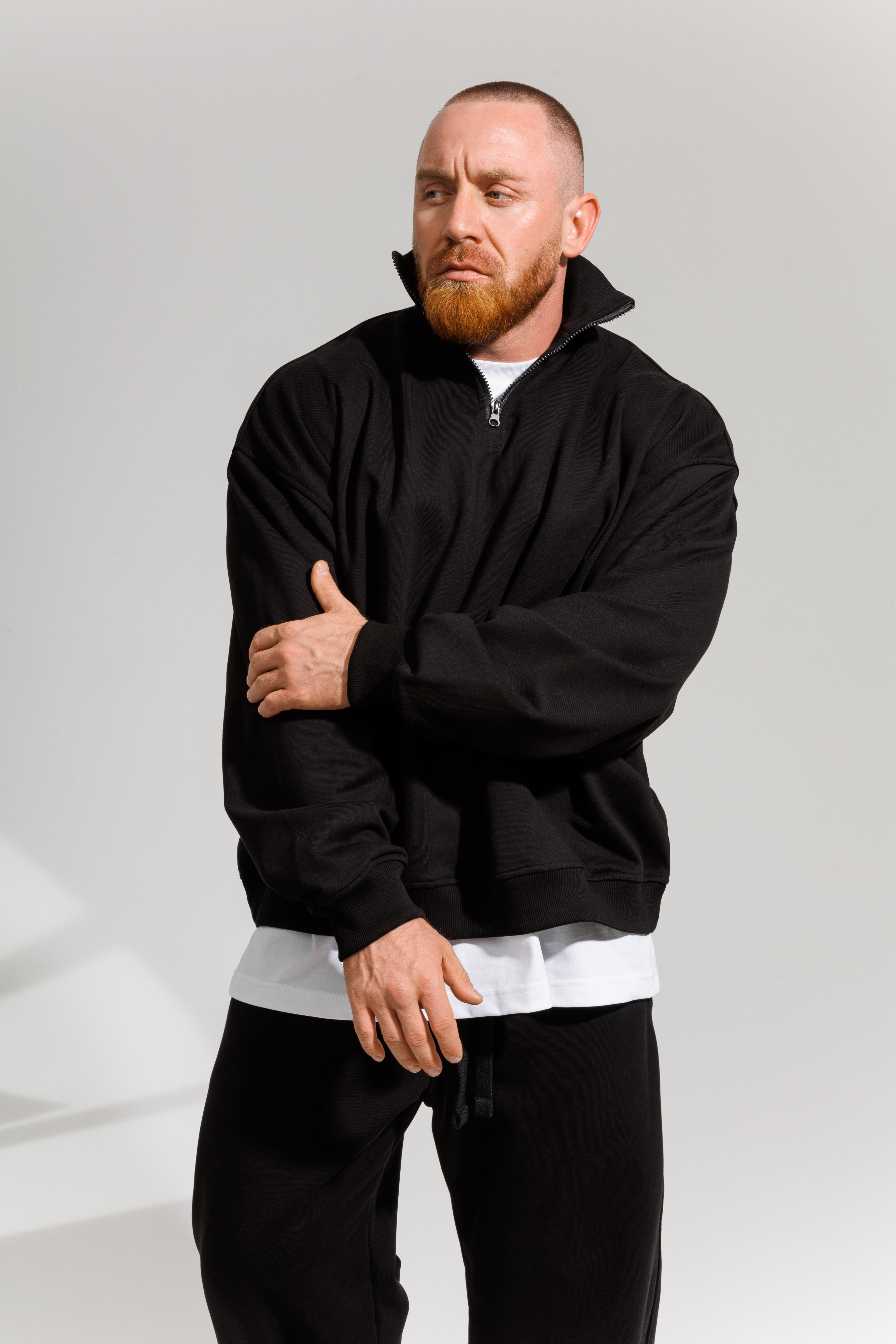 Мужской свитшот с воротником-стойкой на молнии, в стиле oversize.