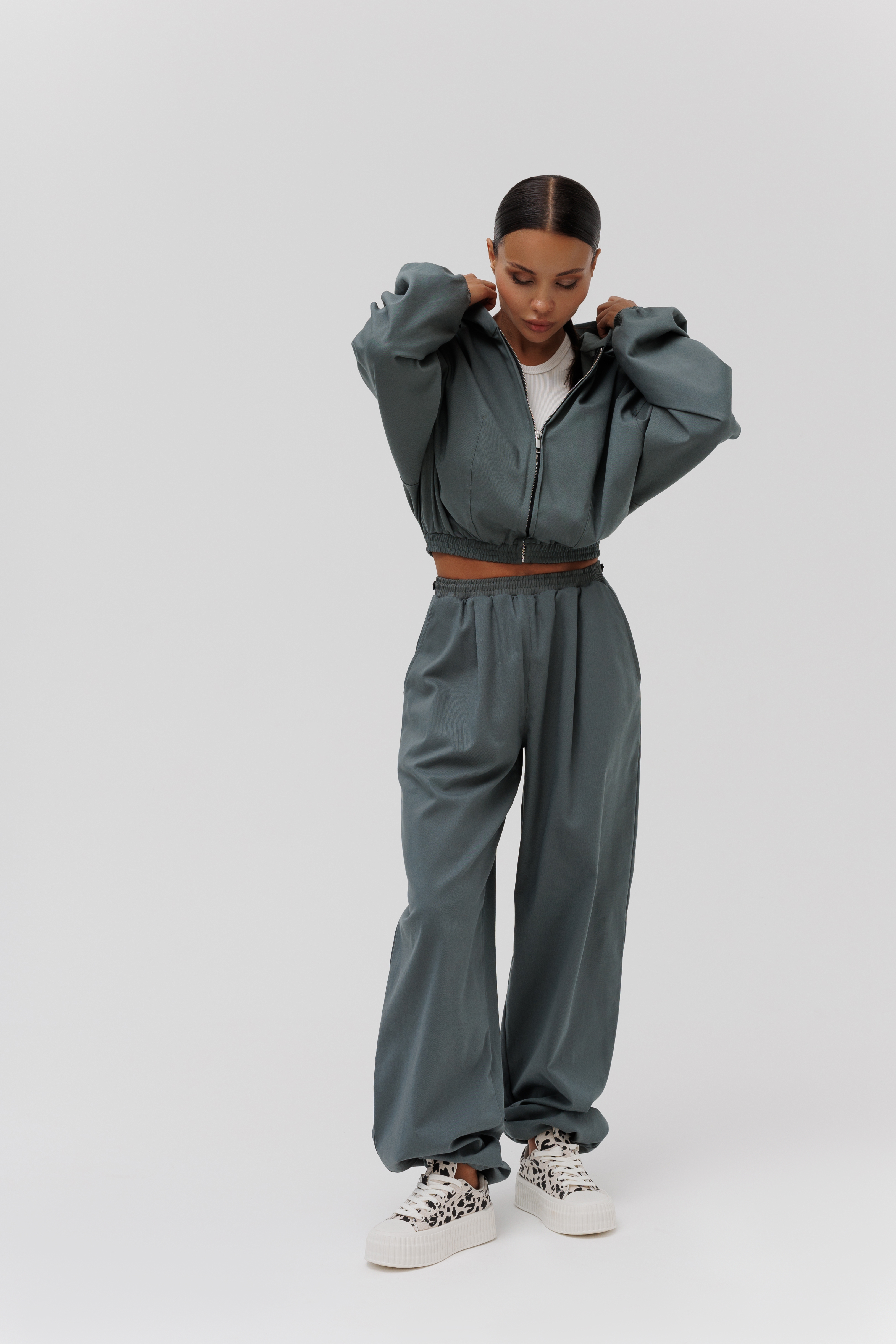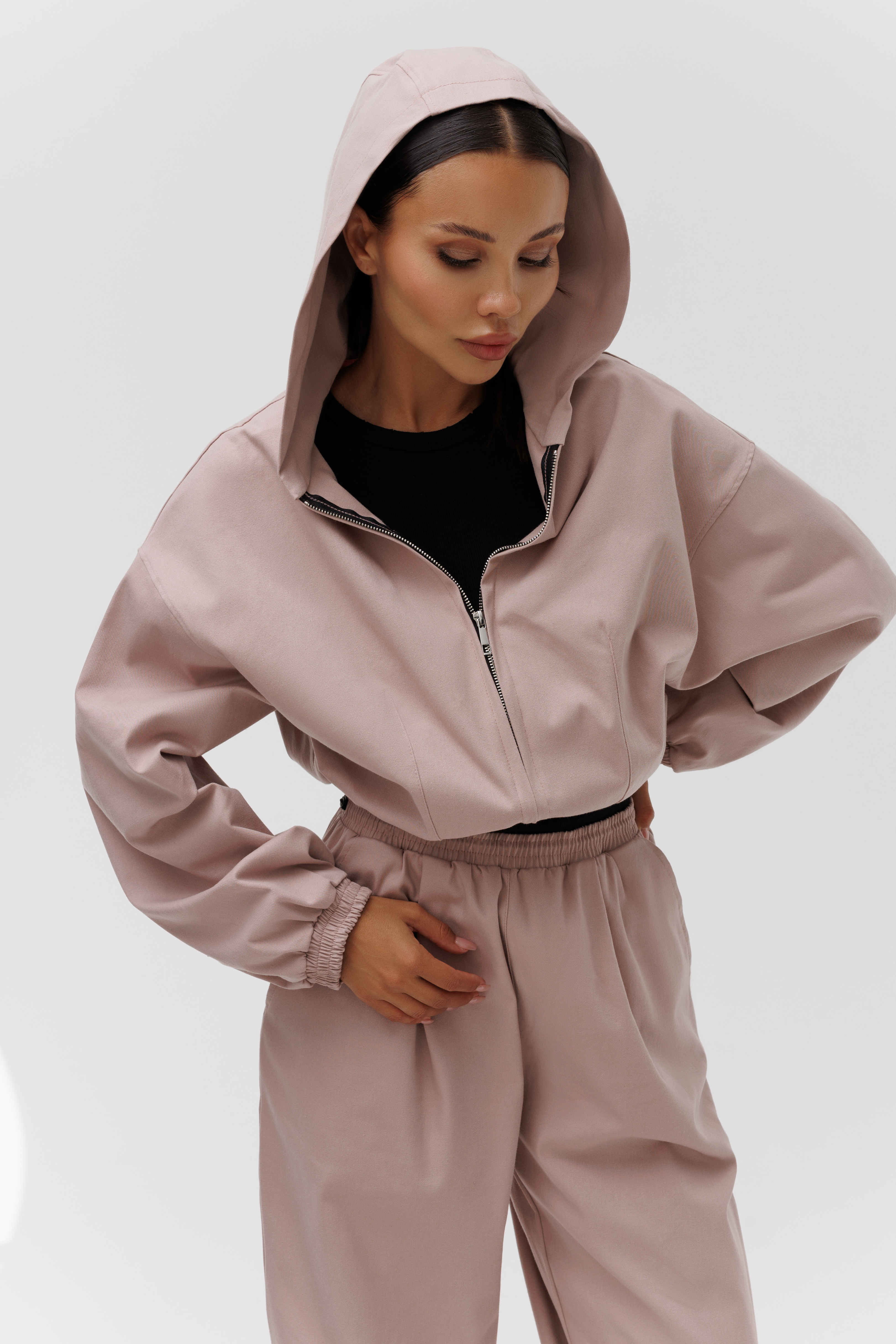 Укороченная женская ветровка с капюшоном -– идеальный выбор для тех, кто ценит стиль и комфорт. Куртка идеально подойдет для прохладных дней, обеспечивая надежную защиту от ветра и дождя